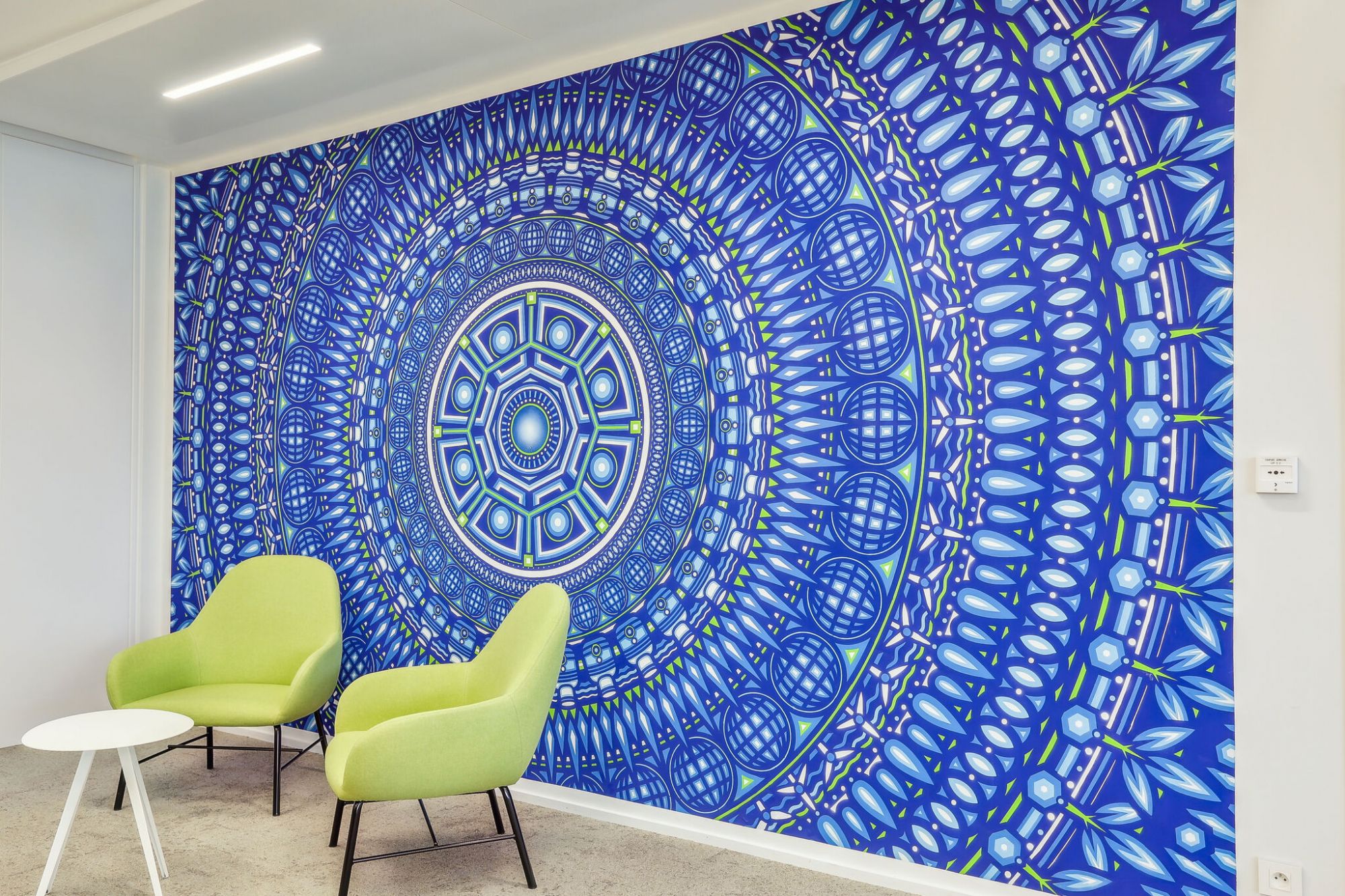 Une fresque représentant le coeur du réacteur de la centrale NUWARD SMR, réalisée par l'artiste Myet, du collectif omart